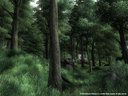 A forest picture. Quote: "Looking at a forest in Oblivion is pretty close to looking through a window in Bethesda's office. The technology used to create these landscapes combines procedural generation of the ground based on soil type and years of erosion, places trees based on species and random growth clustering, and make a grass base on regional patterns, all of which create randomized yet realistic woodlands." |